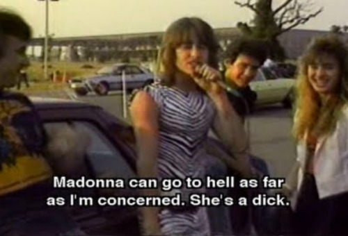 В «Хеви-метал–парковке» маскулинность выставлена напоказ. Фанаты изо всех сил выпендриваются перед камерой, друг другом и своими девушками. Культура хеви-метал сочетала в себе агрессивную мужественность с модой на длинные волосы и причудливые наряды. Дополнительно забавно смотреть на это, если помнить, что спустя 12 лет блиставший на сцене в черной коже вокалист Роб Хэлфорд рассказал о своей гомосексуальности. Но в 1986-м об этом еще не знают ни двадцатилетний Дэвид, пришедший отрываться с тринадцатилетней(!) подружкой, ни еле разговаривающая девушка, повторяющая Hell Yeah и мечтающая запрыгнуть на ствол Хэлфорда, ни великий Человек-зебра. Последний, кстати, удостоился отдельного почитания не только за впечатляющий костюм, но и за пламенную речь о том, что панк — отстой, а Мадонна — хуй. Спустя двадцать лет режиссеры снимали дополнительный материал для DVD-издания и искали героев своего фильма. Кульминацией стал визит к Человеку-зебре, спойлер: он повзрослел и стал слушать кантри.